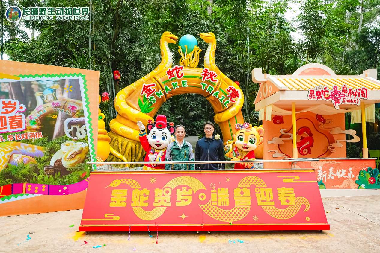 在中国传统文化中,“蛇”被称为小龙,灵活神秘,且有着智慧、长寿、吉祥等美好寓意。升级亮相的新场馆,展出了二十多个珍稀蛇类品种、300多条蛇,更有五大金蛇震撼登场。耀眼的黄金蟒、霸气的花蛇、棕红的玉米蛇、彩虹蟒……五彩斑斓的蛇类让游客们大开眼界,连连称奇。场馆全新升级数字化科普互动,带给游客特别的观蛇新视角:大家可站在透明的玻璃地板上,欣赏神秘的“地下”蛇居;深入“螭幽曲径”,了解蛇的生活习性、生理特征;在“七彩宫”,游客可享受用“蛇”眼看世界的乐趣。春节期间,随处可见的蛇年氛围布置,“灵蛇小剧场”等演出,让大家感受祥瑞的多元魅力。还有青龙山餐厅推出的春节限定版套餐,风味独特,寓意满满,欢迎全球游客来此大饱口福。