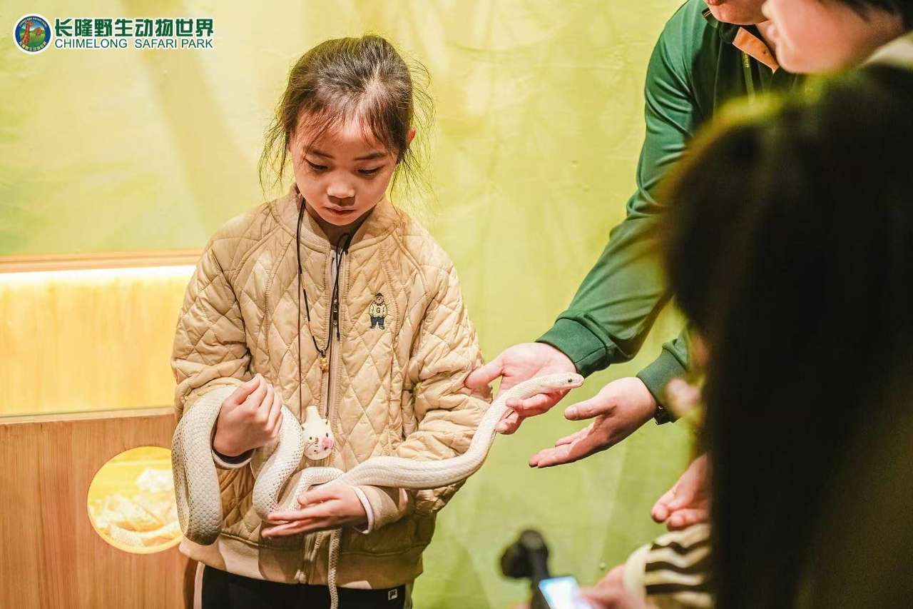 蛇类的保育日常也引起了游客的浓厚兴趣。“有很多蛇是非常温和的,你可以近距离地摸摸它。”园区保育员一边介绍一边示范,不少游客在保育员的专业指导下,第一次亲手触碰了蟒蛇。“原来蛇也有这么可爱的一面。”刚刚和黄金蟒亲密接触的小朋友兴奋地说道。“蛇是没有外耳的,而且视力比较差,它们用舌头和下巴来探索这个世界。”科普专家讲解了各种蛇的习性和特点,让游客不仅了解到蛇类的奥秘,更收获人与蛇类和谐相处的小知识,增强保护生物多样性的意识。